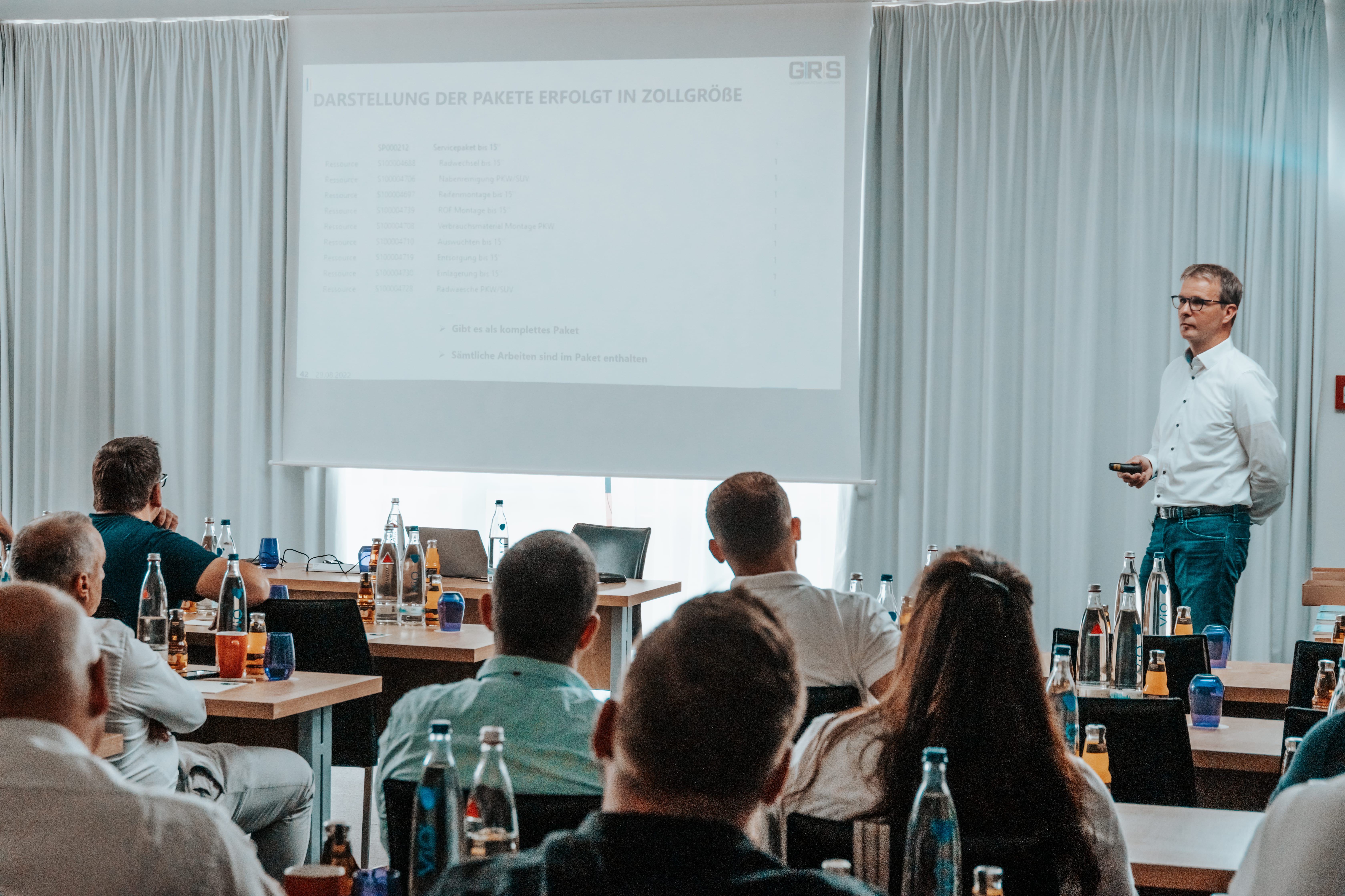 Im zweiten Teil des diesjährigen Roadshow-Programms präsentierte Marco Heitmann, IT-Retail-Leiter (GRS), den Teilnehmenden weitere digitale Lösungen in Verbindung mit dem Warenwirtschaftssystem TireSoft3, von denen die Autoservice-Schnittstellen nur einen Teil ausmachen. Der GRS-Teilekatalog bildet hier das Herzstück der Autoservice-Arbeiten in den Partner-Werkstätten, und enthält entsprechende Verlinkungen zu den OE-Plattformen, die unter anderem zu den digitalen Serviceheften führen. Viele weitere Anbindungen sind in den letzten 10 Jahren exklusiv für die GRS-Partner eingeführt und weiterentwickelt worden. Mit der Einführung eines Zeiterfassungstools, eines Archivierungssystems für eine rechts- und revisionssichere Archivierung der Geschäftsbelege – einhergehend mit elektronischer Unterschrift via Pad –, dem Fahrzeugscheinscanner sowie der Anbindung an den Profiltiefenmesser und die Depotlagerverwaltung sind die tiresoft 3-User heute für einen modernen Werkstatt-Alltag bestens ausgestattet. Auch einen aktuellen Stand zur neuen TireSoft3-Anbindung des Zahlungsanbieters Adyen, der die Online- und Offline-Zahlung vereinheitlicht, konnte Heitmann den Teilnehmenden präsentieren. „Wir sind im ständigen Austausch mit unseren Partnern, nehmen ihr Feedback ernst und suchen stets nach schnellen Lösungen. Das macht TireSoft3 so besonders, denn es ist nicht nur eine Warenwirtschaft für unsere Partner, sondern eine gemeinsam mit ihnen entwickelte und auf ihre Bedürfnisse zugeschnittene Software“, so Heitmann.