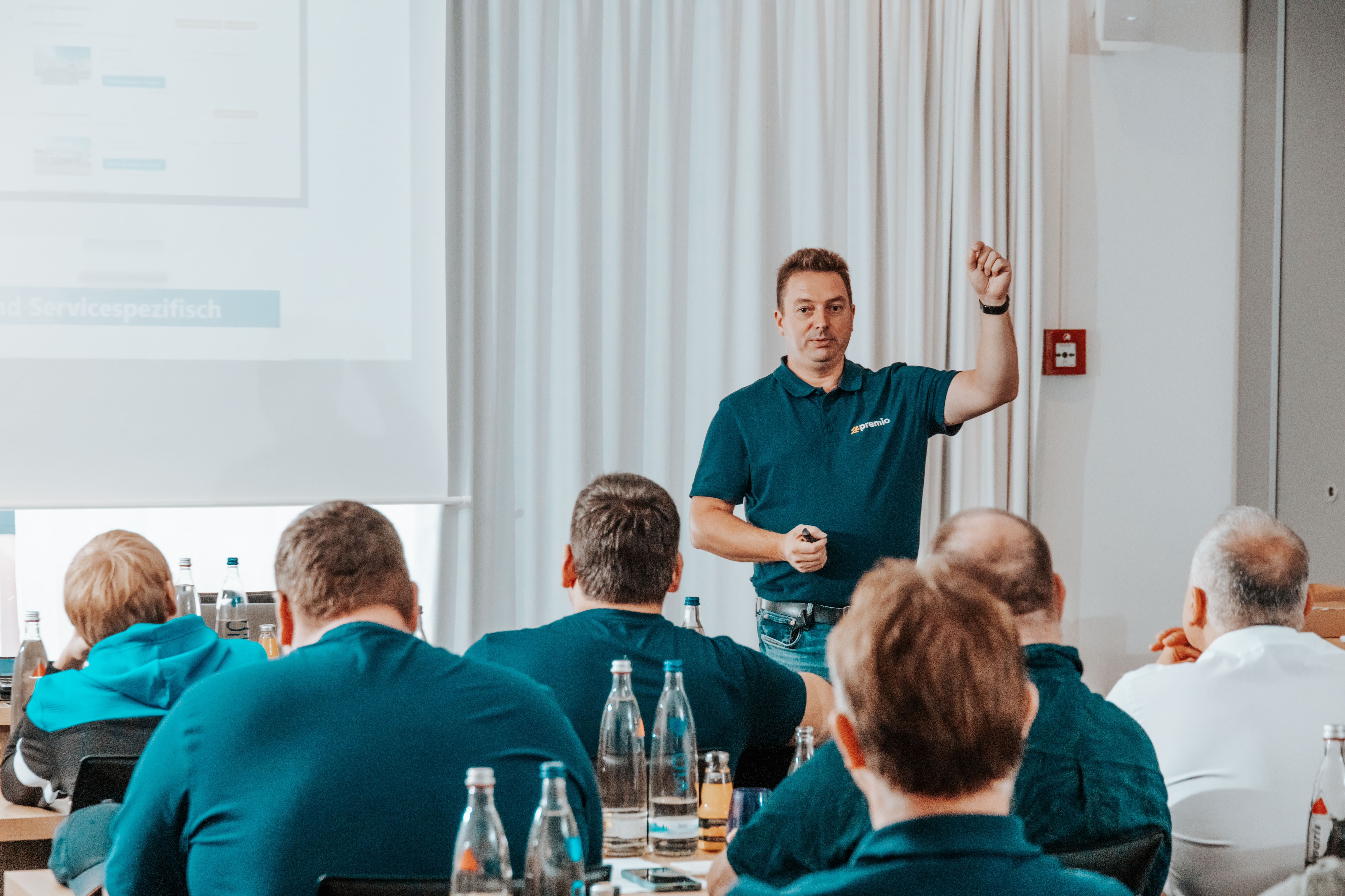 Anschließend ging er auf die betrieblichen Mindestanforderungen im Umgang mit E-Autos ein. Dabei stellte Brückner heraus, was genau zur Ausstattung eines E-Arbeitsplatzes für korrektes und sicheres Arbeiten gehört und welche nötigen Qualifikationen hier in den Betrieben vorliegen müssen. Neben praktischen Tipps zur Durchführung des neuen digitalen Service-Checks gab Brückner den eindringlichen Hinweis an die Partner, Kfz-Reparaturen auch zunehmend online über den eigenen Shop oder Kfz-Plattformen verfügbar zu machen, und lud die Teilnehmenden im Anschluss zur gemeinsamen Diskussionsrunde zu den vorgestellten Themen ein. „Wer seinen Kunden als Kfz-Meisterbetrieb keinen fertigen E-Arbeitsplatz für Wartung und Reparatur von E-Autos anbieten kann, wird es in naher Zukunft schwer haben und Kunden wie Leasingflotten verlieren. Hier heißt es: Jetzt handeln und den eigenen Betrieb e-ready machen“, so Brückner abschließend.