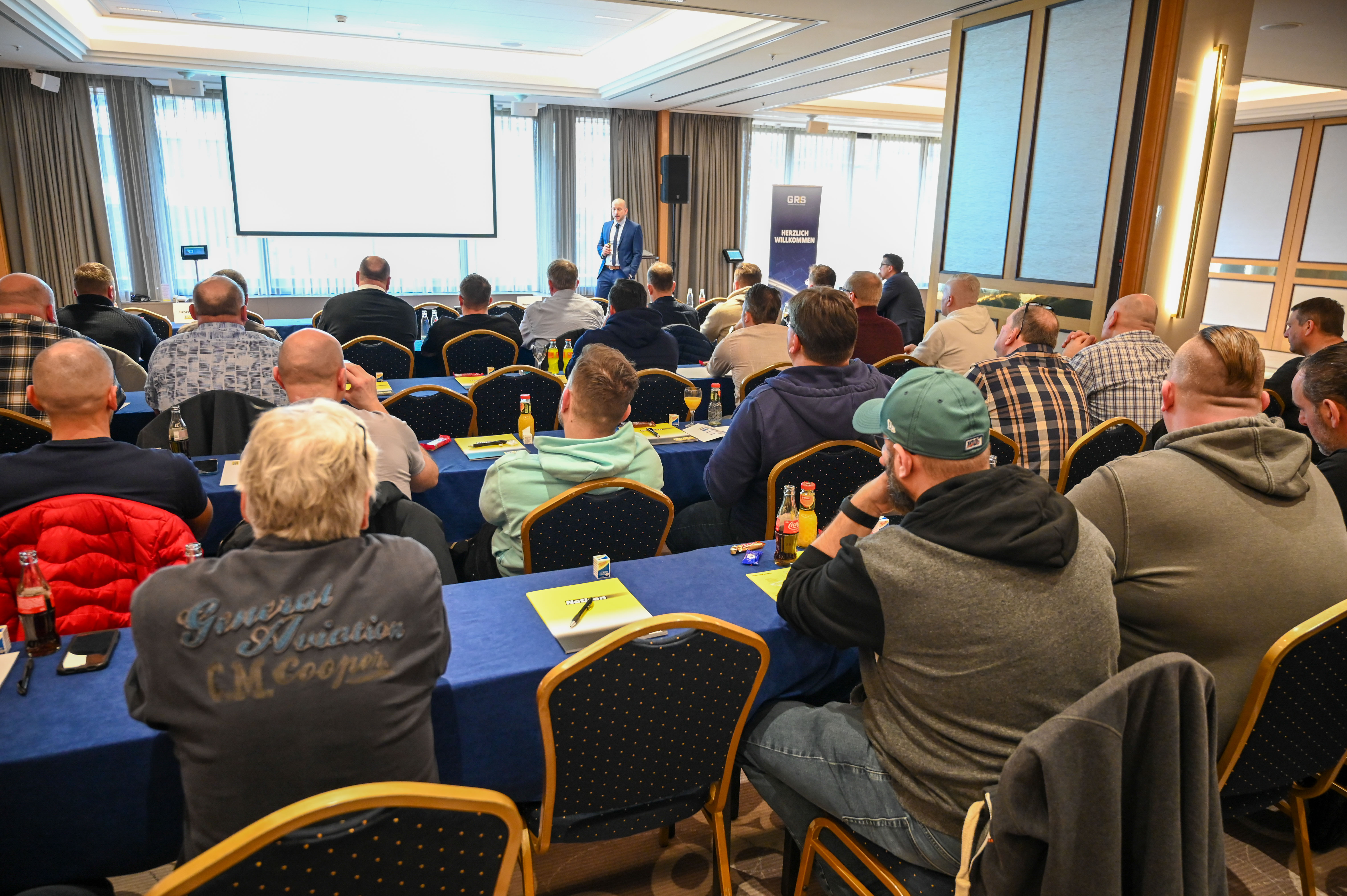 Gastgeber Benni Lipps (GRS) begrüßte die rund 30 Quick-Partner in Leipzig und freute sich, der Gruppe vor vollem Haus Zahlen und Fakten der vergangenen zwölf Monate zu präsentieren.
