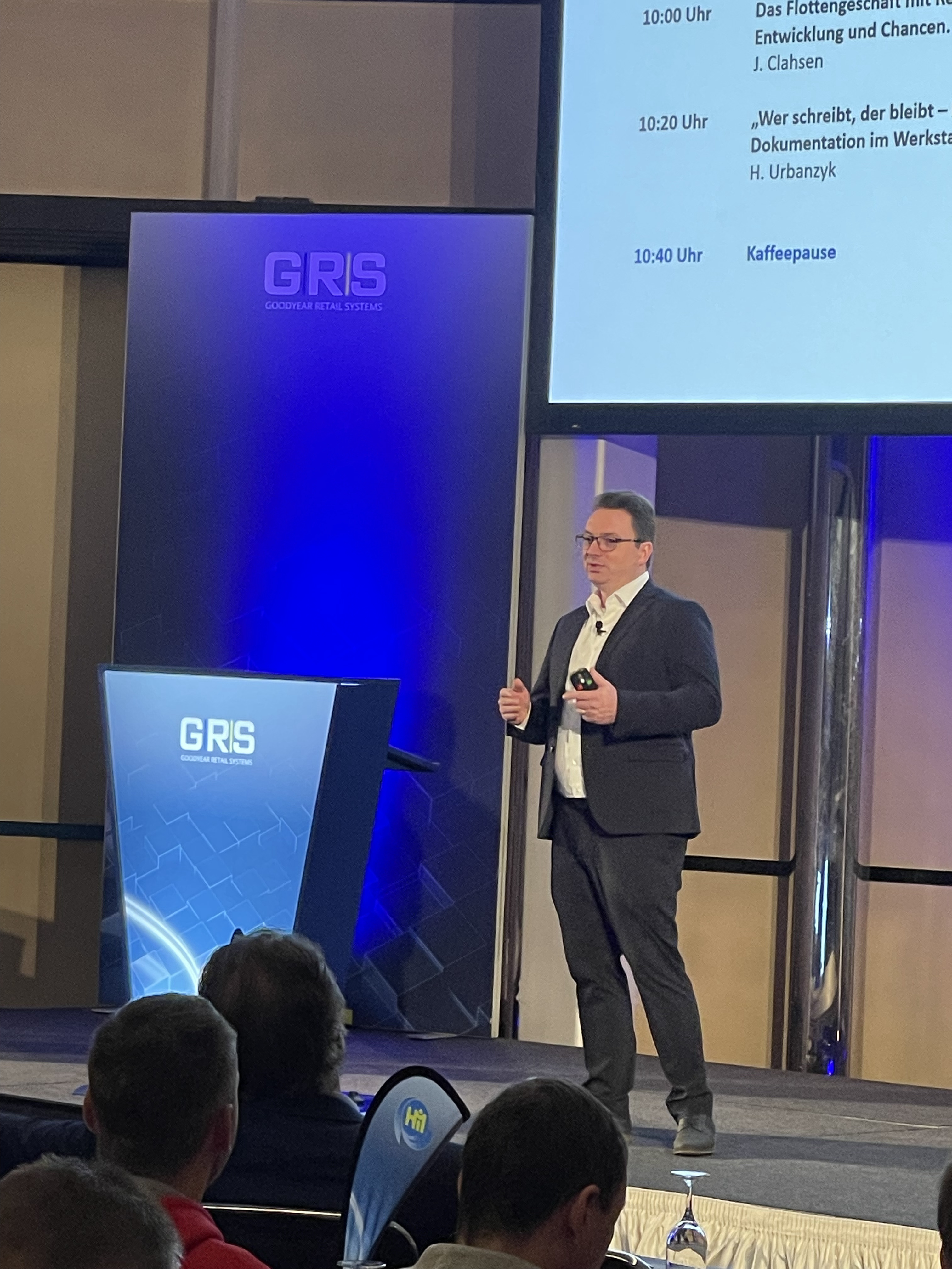 Wie deutlich der Bereich Autoservice in den Reifenfachhandelsbetrieben der GRS zugenommen hat, zeigte die mit rund 270 Teilnehmenden sehr gut besuchte Veranstaltung. Dennis Epping, Manager Retail Operations EU Central (GRS), ging auf diesen Aspekt direkt zu Beginn seines Vortrages ein. Er präsentierte die hohe Bewertung von Wichtigkeit und Zufriedenheit des Bausteins „Autoservice“ aus den Ergebnissen der aktuellen GRS-Partnerschaftsanalyse und betonte die zweistelligen Wachstumsraten der letzten fünf Jahre im Autoservice-Umsatz bei den Premio-Betrieben. Epping hob zudem hervor, dass die Bedeutung freier Werkstätten, insbesondere aufgrund des Preis-Leistungs-Verhältnisses, der guten Erreichbarkeit und des breiten Know-hows über alle Marken hinweg weiter steige. „Mit einem Marktanteil von über 50 % sind die freien Werkstätten die klaren Gewinner am Markt“, erklärte Epping. Auch wenn die Reparatur- und Wartungsaufträge langfristig rückläufig seien, erwarte man in den kommenden Jahren gerade für den älteren Pkw-Bestand der Verbrenner eine steigende Auftragslage, inklusive Inspektionen und Service rund um die Fahrerassistenzsysteme. Ergänzend kämen zunehmend Arbeiten an Elektrofahrzeugen hinzu. Er betonte die Erwartungen der Kunden an hohe Professionalität und die Notwendigkeit für die Partner, durch Veränderung der Prozesse, Investment in Werkstattausstattung und ausgebildetes Personal die Effizienz zu steigern und Mehrwert zu schaffen. Hier technisch auf dem neuesten Stand zu bleiben und sich fortzubilden, sollte auch künftig auf der Prioritätenliste ganz oben stehen, ergänzte Brückner.